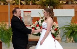 Our wedding ceremony was held at St. Ann Catholic Church in Normandy, MO. St. Ann is located just down the street from the University of Missouri-St. Louis (UMSL), where both Jenny and Tom went to college. Fr. Bill Kempf officiated the ceremony. Fr. Bill is the director of the Catholic Newman Center at UMSL and also the pastor of St. Ann.